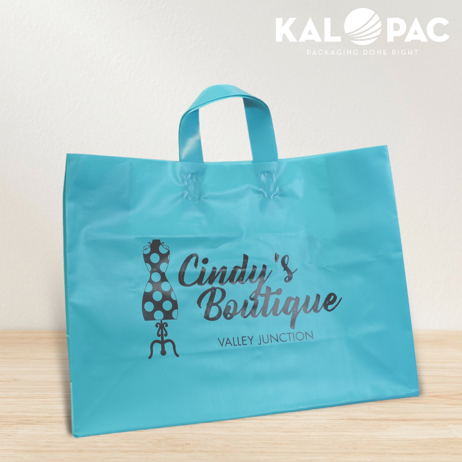A soft plastic loop handle is heat sealed with an oval weld to the faces of the bag. The Flexi-Loop design makes it comfortable to hold and allows full bag usage for a variety of purposes. These are another very popular style for the retail and food service industries, and can be done in many different shapes and sizes. The handles can also match the plastic being used for the bag itself or even be a different film color entirely. Cardboard bottoms are also available.