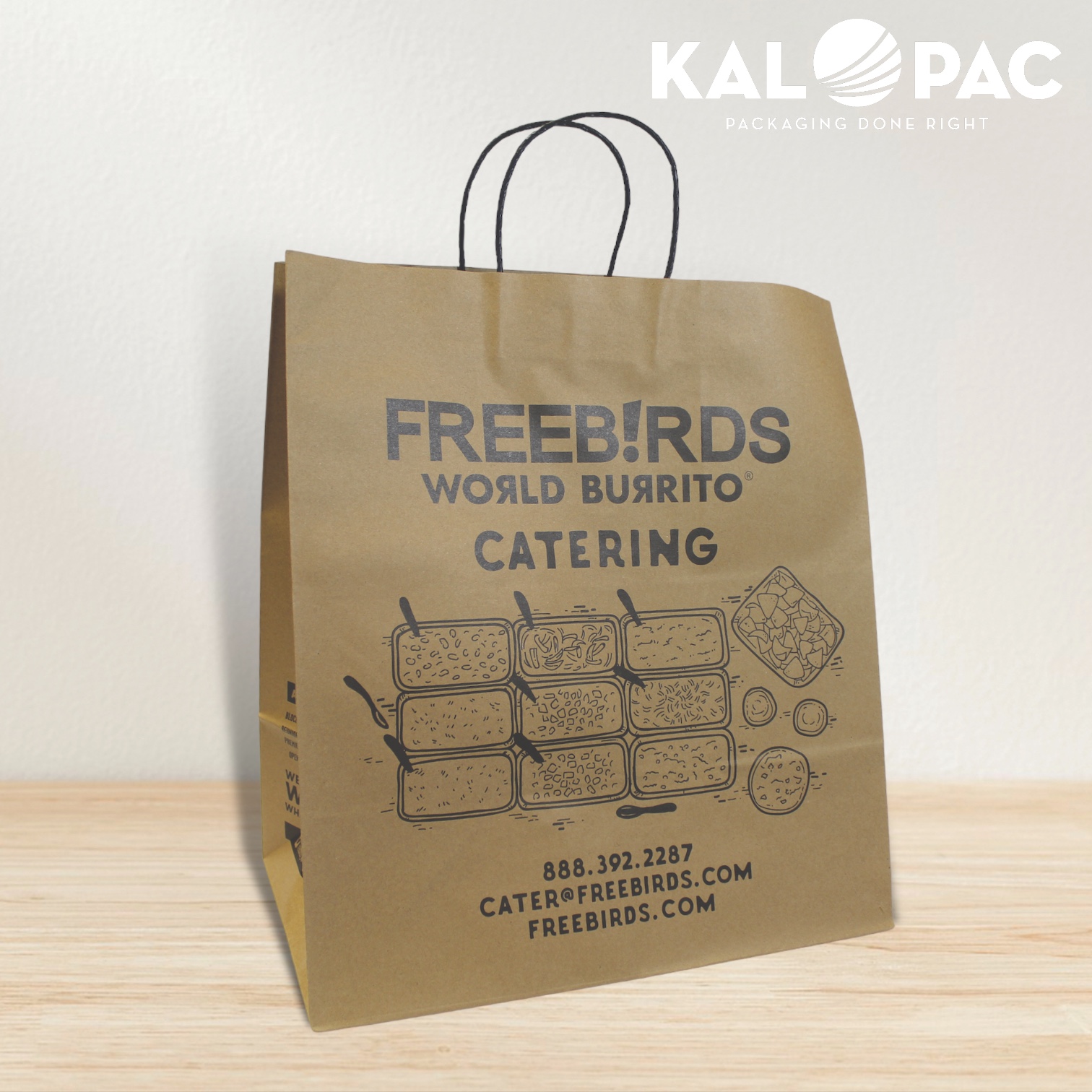 Food Service bags are ideal for restaurant takeout and catering use. They are designed to hold multiple containers of varying sizes and are available in a variety of materials, handles & sizes. Lightweight to heavy duty, we have an option for you. Want to up your game with a custom printed bag for your business? We got you covered. We can do almost any custom size and design it to your specific needs.