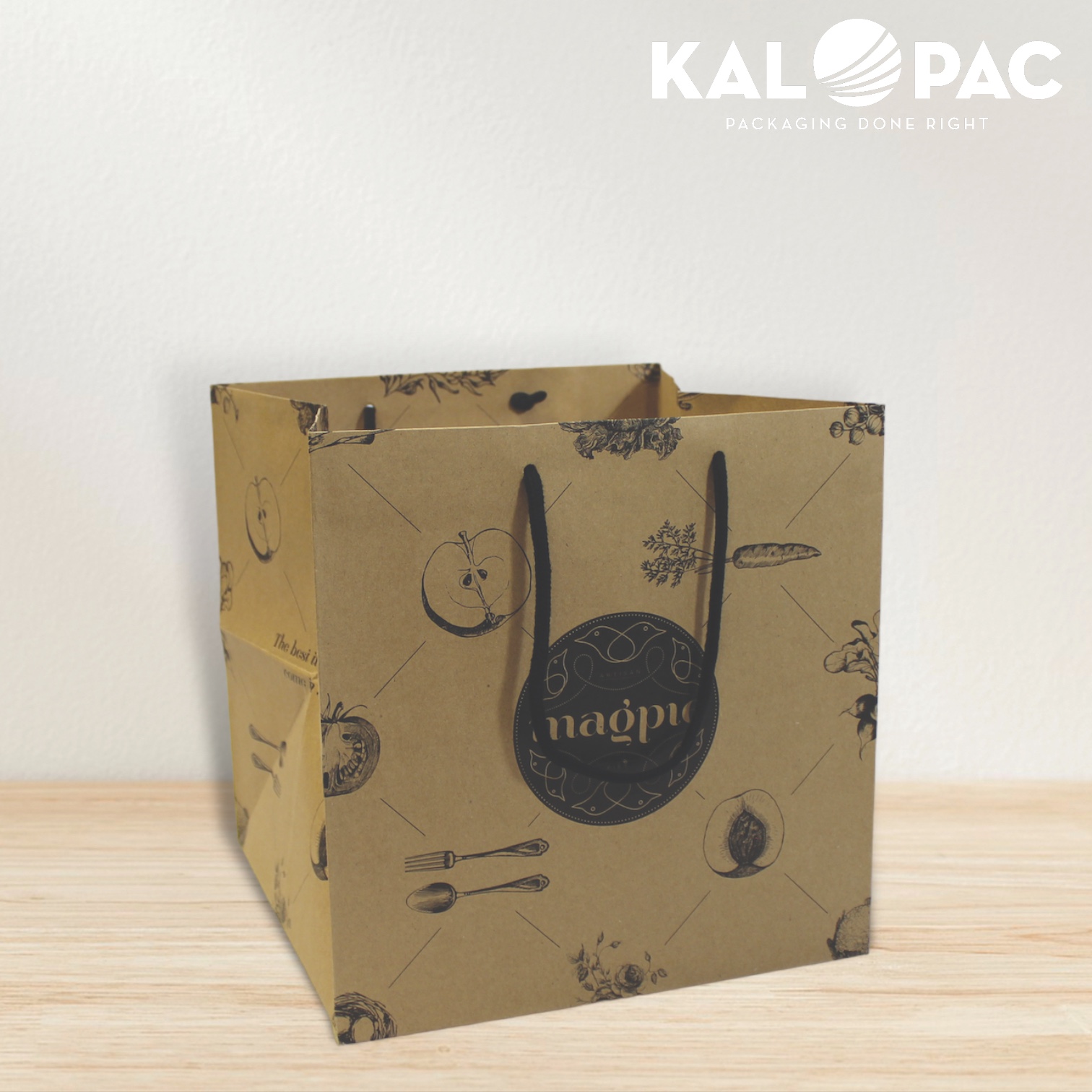 One of our most requested options is the widely known Eurotote. This is available with any length of handle glued or inserted through a reinforced cardboard foldover top. They are also made with a cardboard bottom for additional reinforcement that can be customized upon request. Eurototes are our top-of-the-line paper bag option that offers extensive customization capabilities; everything from bag construction, paper types, thickness, lamination/coatings, grommets, handles, and various printing enhancements.