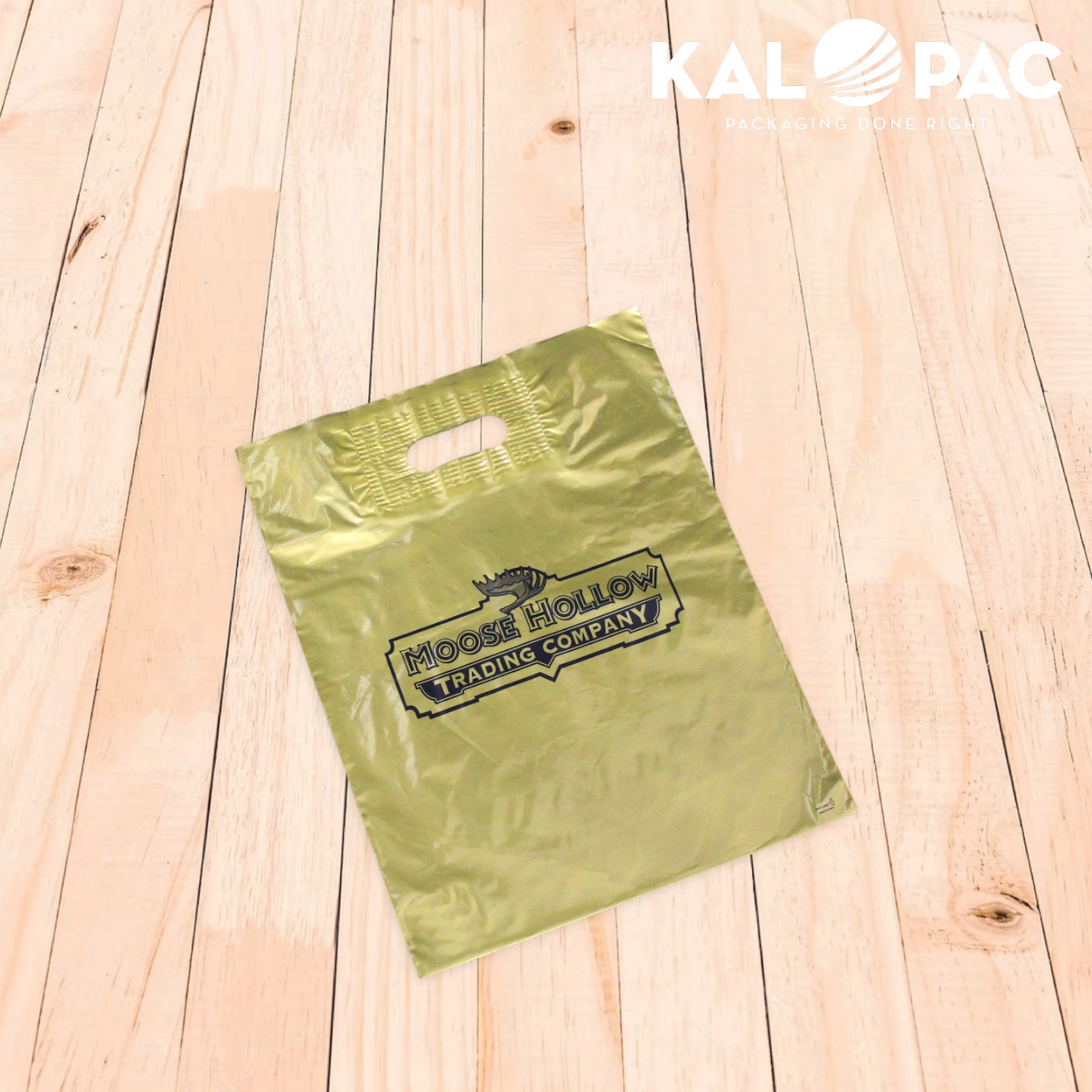 For extra handle support, a rectangular patch is heat sealed to the inside faces of the bag where the handle will be. An oval die cut is then punched through the face and the patch to give the die cut extra reinforcement. Commonly, the die cut has a standard 3” x 1” opening; however, this can also be customized. Adding the patch provides extra strength and longevity when carrying heavier items.