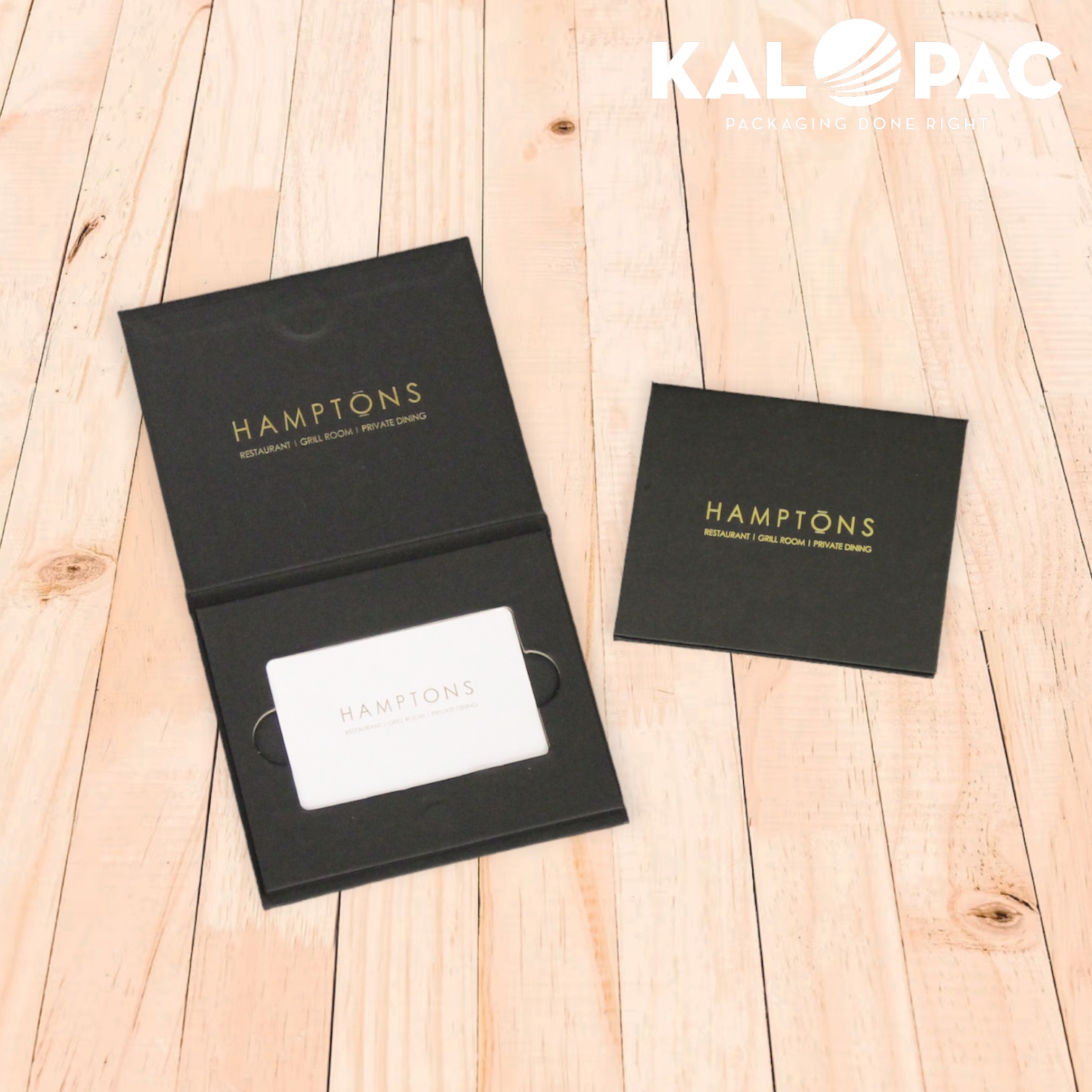 We offer different varieties of Gift Card Holders. Our most popular styles include magnetic or ribbon closure boxes, and foldover envelopes, but we can design any template to fit your needs. We can customize them with embossing, hot stamping, magnetic closures, ribbons, full coverage artwork, soft-touch/anti-scratch lamination, and so much more.