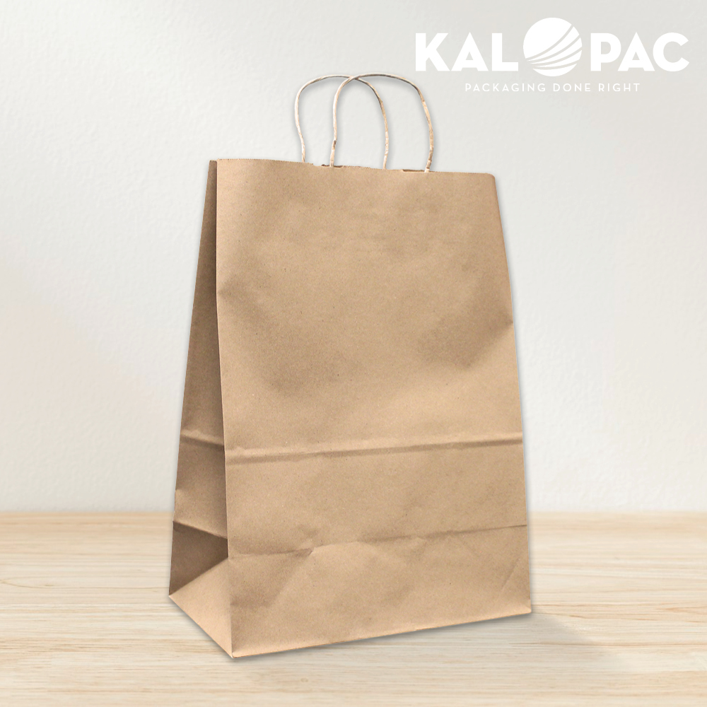 Our Natural Kraft Stock Bags are great for retail, giveways, takeout and catering. All bags are unlaminated with a twisted paper handle, and composed of FSC Certified 100% post-consumer recycled paper, and is 100% recyclable. Black logo printed in bottom gusset and no cardboard bottom.